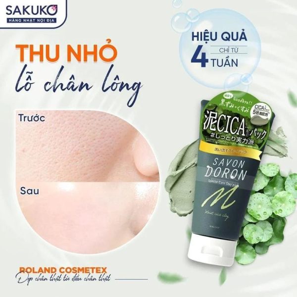Mặt nạ đất sét SAVON DORON Clay CICA Pack có chiết xuất từ 7 loại đất sét kết có công dụng hấp thụ bụi bẩn sâu từ lỗ chân lông và nhẹ nhàng loại bỏ tế bào da chết xỉn màu. Kết hợp với tinh chất từ rau má, axit hyaluronic và ceramides, sản phẩm không gây khô rát trên da mà còn giúp dưỡng ẩm cho làn da mịn màng.