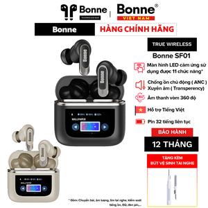(Bản Nâng Cấp Tiếng Việt) Tai nghe có màn hình BONNE SF01 chính hãng, tai nghe bluetooth chống ồn chủ động có màn hình cảm ứng 11 chức năng: Tăng giảm âm lượng, Tìm kiếm tai nghe,…, chống ồn chủ động ANC – Xuyên Âm, Có Mic đàm thoại, bảo hành 12 tháng.